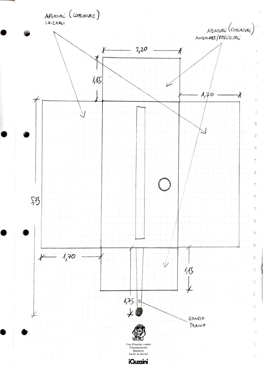- Carico acqua da rete o riserva taniche con pompa. Scarichi a perdere canalizzati.