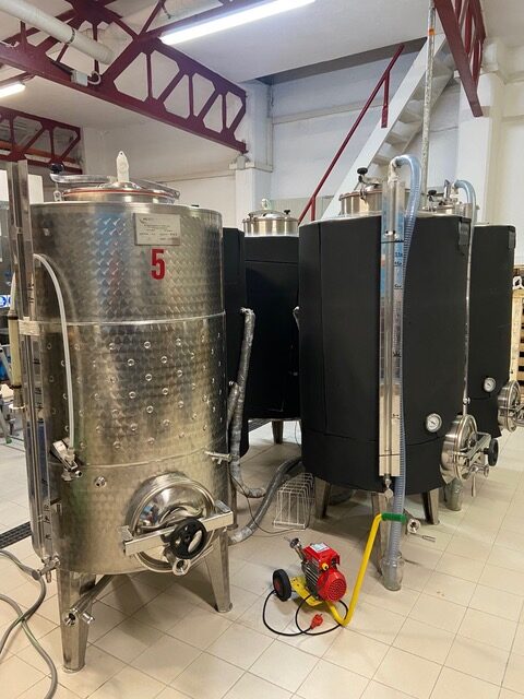 - Cantina di fermentazione comprensiva di n.5 tank da 600litri nominali ed impianto di controllo temperatura con ciller per raffreddamento glicole.
