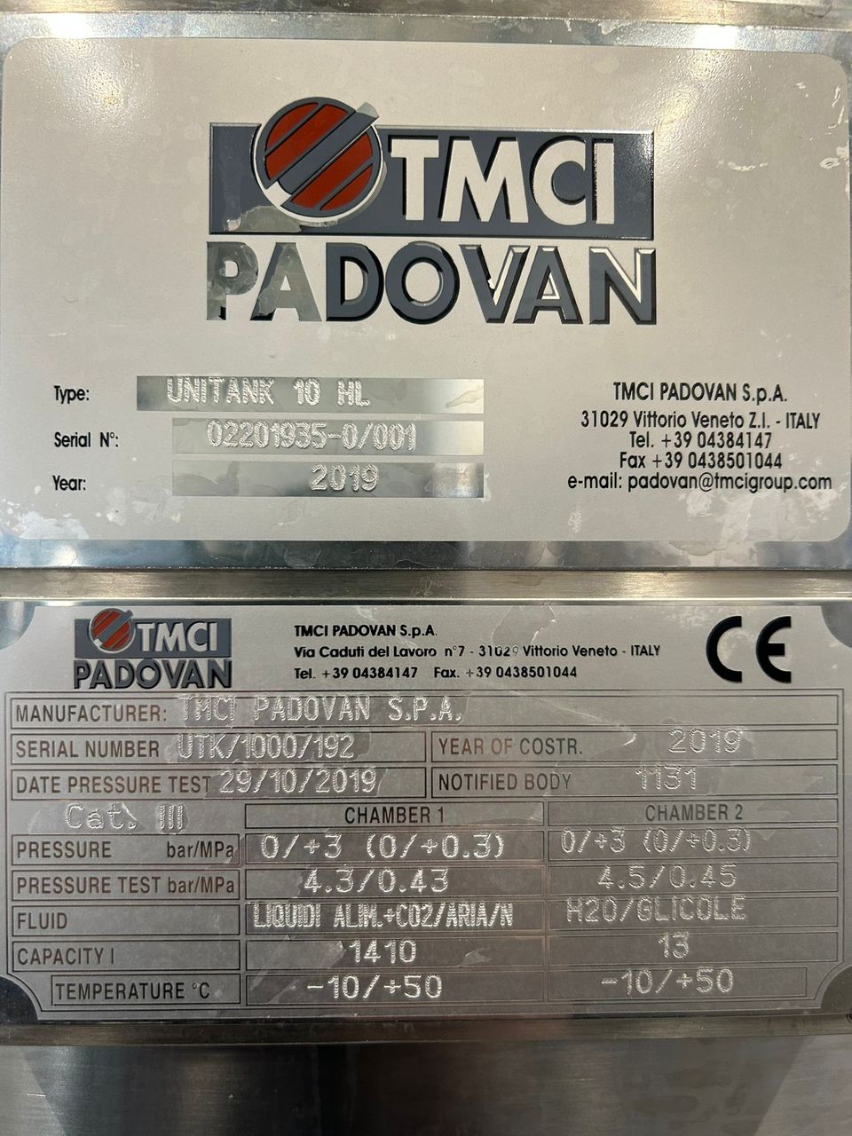 - 2 fermentatori da 1000 litri – TMCI Padovan.