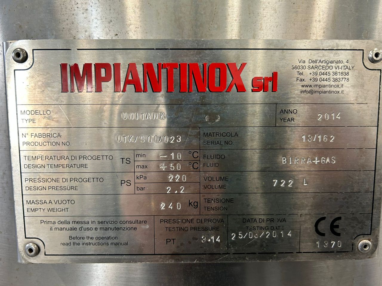 - 3 fermentatori da 500 litri – Impiantinox.