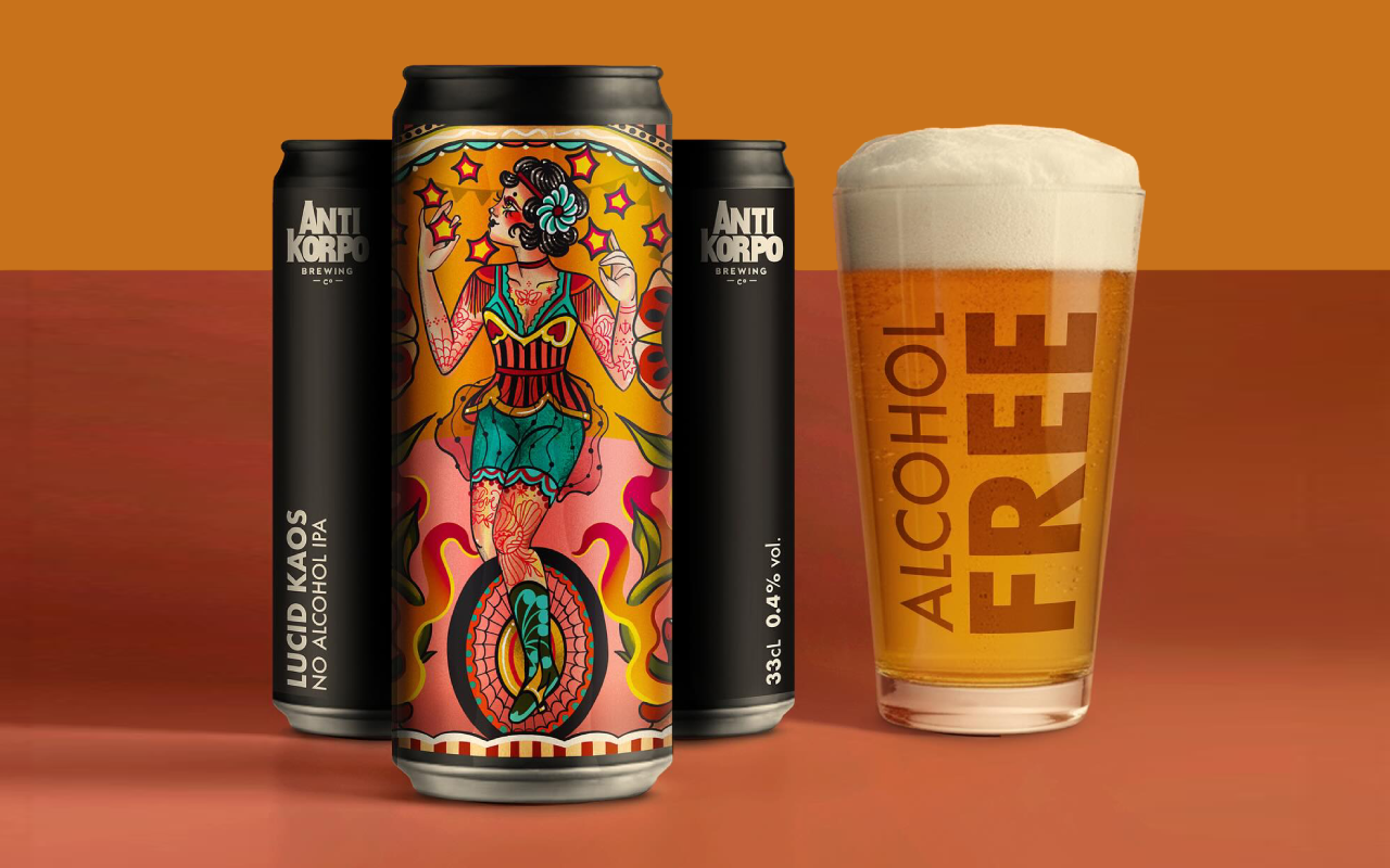 È da un po’ che non scriviamo di nuove birre analcoliche, quindi l’ultima novità di Antikorpo Brewing (sito web) ci offre l’occasione di riprendere il discorso. Oltre a sfoggiare una grafica bellissima, opera di Lucrezia Urtis, la nuova Lucid Kaos (0,4%) ha la peculiarità di rientrare nella famiglia delle no-alcohol artigianali in stile IPA. La ricetta punta a dare “sostanza” con un complesso mix di cereali (malto Pils, orzo, avena, segale e frumento), mentre i luppoli Citra, Mosaic e Centennial regalano un bouquet tropicale (passion fruit, mango), con un tocco agrumato (cedro) e balsamico (mentuccia). Gli stessi aromi si ritrovano in bocca, dove la birra chiude leggermente amara e con una buona persistenza retrolfattiva.