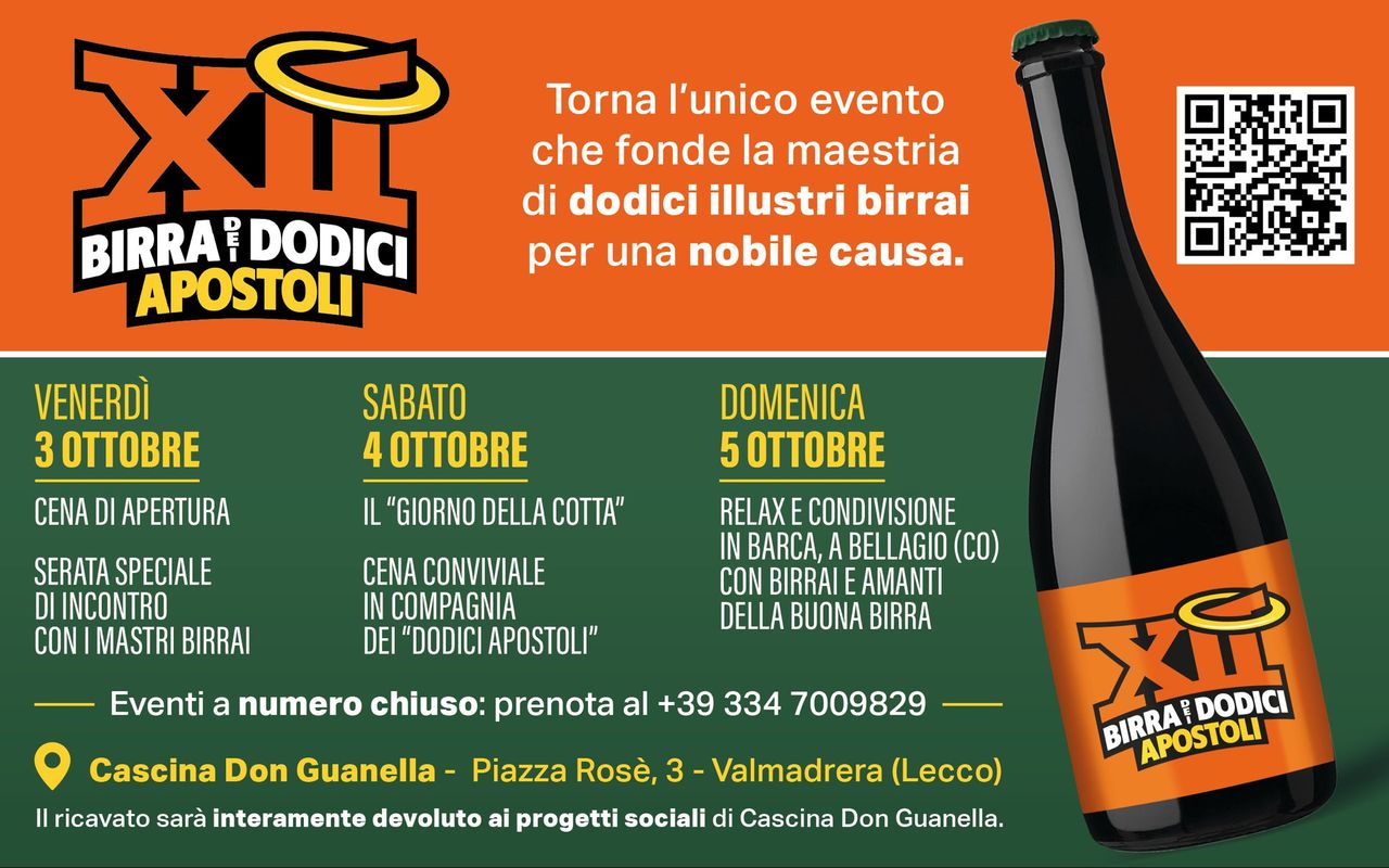 Dodici birrai uniti per una cotta "sociale", con iniziative a corredo. È questa in sintesi la formula dell'evento legato alla nascita della Birra dei Dodici Apostoli, che si terrà da venerdì 3 a domenica 5 ottobre presso il birrificio Cascina Don Guanella di Valmadrera (LC). La birra sarà la natalizia 2025 del produttore lombardo, una […]