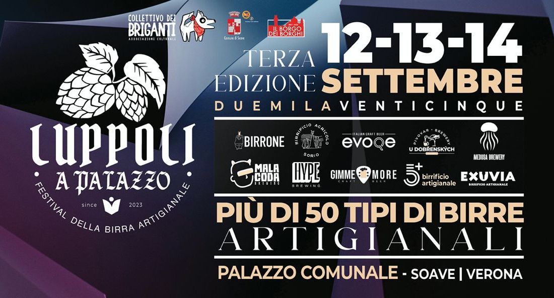 Sarà ancora la suggestiva cornice del Palazzo del Capitano di Soave (VR) a ospitare Luppoli a Palazzo, manifestazione giunta alla sua terza edizione e in programma da venerdì 12 a domenica 14 settembre. I birrifici partecipanti sono Malacoda, 5+, Hype Brewing, Birrificio Agricolo Sorio, Medusa Brewery, Exuvia, Gimme More, Birrone, Evoqe e il ceco U Dobrenskych. Il programma prevede degustazioni guidate con live cooking, incontri per operatori del settore, premiazione delle migliori birre, aperitivi musicali e dj set. Per ulteriori dettagli potete fare riferimento alla pagina Facebook di Luppoli a Palazzo.