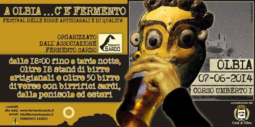 Anche quest’anno l’associazione Fermento Sardo organizza A Olbia… c’è fermento! in programma sabato 7 giugno nel comune sardo. Saranno presenti le birre di produttori sardi, nazionali e stranieri: Dolmen, Domusnovas, Ilienses, Horo, Chemu, P3, Marduk, Birrificio di Cagliari, Terrantiga, Hibu, Croce di Malto, Via Priula, Bellazzi, Lambrate, Bad Attitude, Glazen Toren, De La Senne. Ci sarà musica dal vivo, stand di oggettistica, cotta pubblica. Per altre informazioni potete consultare la pagina Facebook dell’iniziativa.