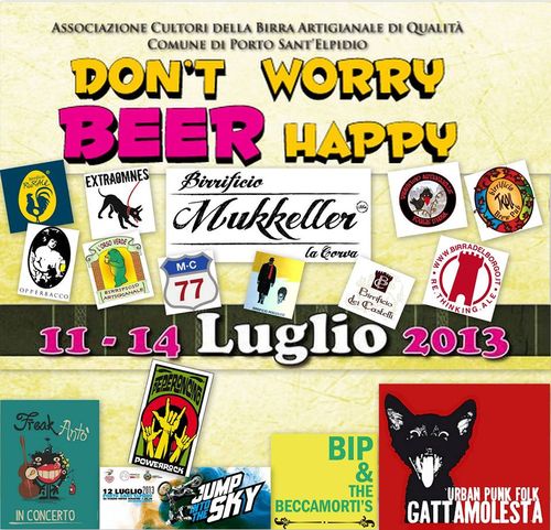999338_274570856015943_806716190_nGiunge alla sua sesta edizione Don’t worry Beer happy, il festival delle birra artigianale di Porto Sant’Elpidio (FM), nelle Marche. Quest’anno andrà in scena da giovedì 11 a domenica 14 luglio. Oltre al birrificio locale Mukkeller, parteciperanno Foglie d’Erba, Orso Verde, Extraomnes, Opperbacco, Birrificio dei Castelli, Birra del Borgo, Rurale, MC 77, Pergolese e Buskers (oltre allo stand di BirraBottega). Ci sarà musica dal vivo e gastronomia di qualità. Per ulteriori informazioni consultate la pagina Facebook dell’evento.