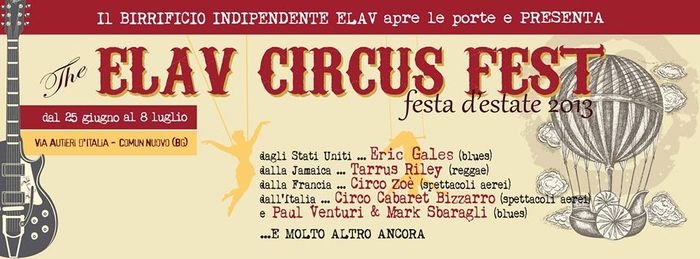 Il birrificio Elav è sicuramente tra i più attivi nel panorama nazionale, in particolare per l’organizzazione di eventi in cui la musica, oltre alla birra, è protagonista. Dal 25 giugno all’8 luglio è allora in programma l’Elav Circus Fest, una lunga festa scandita da spettacoli (non solo musicali) e tante produzioni artigianali. Tra gli artisti finora contattati ci sono Eric Gales (blues), Tarrus Riley (reggae), Circo Zoè (spettacoli aerei), Circo Cabaret Bizzarro (spettacoli aerei), Paul Venturi & Mark Sbaragli (blues) e altri ancora. La sede dell’evento è quella del birrificio di Comun Nuovo (BG), mentre il programma prevede un servizio pizzeria e griglieria e le birre della casa (in particolar modo quelle estive). Per il resto tenete d’occhio la pagina Facebook dell’evento, dove a breve seguiranno altri dettagli.