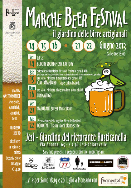 Alla lista delle manifestazioni dedicate alle scene brassicole delle varie regioni italiane si aggiunge anche il Marche Beer Festival, in programma da venerdì 14 a domenica 16 giugno e poi ancora sabato 21 e domenica 22 giugno a Jesi (AN). I birrifici presenti saranno: Mukkeller, Birrificio dei Castelli, MC77, Pergolese, Birrificio del Gomito e Il Mastio. Il programma prevede dj set, premio per la migliore birra, mini corsi di degustazione, musica dal vivo. Per ulteriori informazioni potete consultare il sito dell’evento.