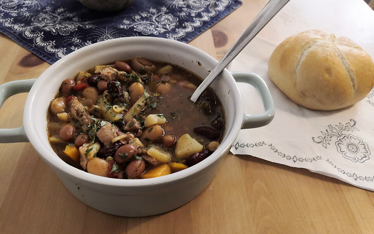Chiudiamo con una puntata in Germania, parlando dell’Eintopf: da quelle parti credono sia la risposta perfetta alle giornate invernali più pungenti. Pur con possibili varianti regionali, è normalmente caratterizzata dalla sostanza della carne di maiale dei gross wurst e del formaggio (Limburger) a fette e fuso, oltre a brodo vegetale, peperone rosso, pepe e noce moscata, fagioli rossi (red kidney, caratterizzati da tendenza dolce) e da una (immancabile) rifinitura di burro.