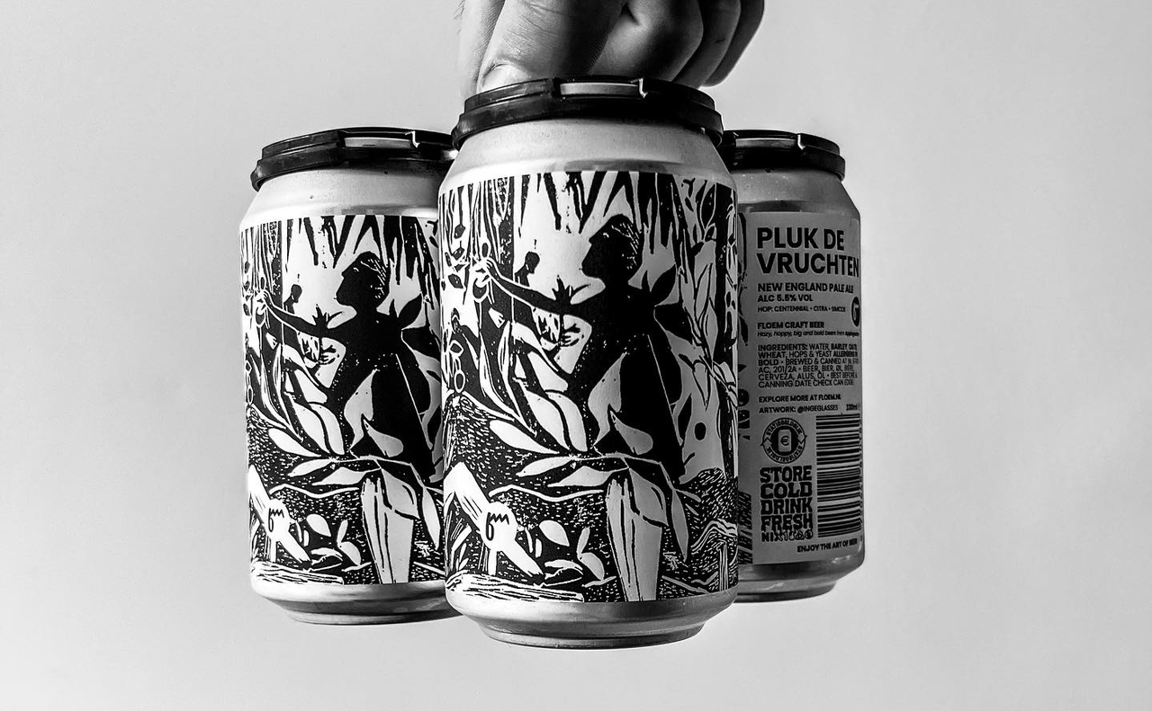 Floem lavora a stretto contatto con l’artista Inge Bril (@ingeglasses), specializzata in linoleografia – una tecnica di stampa che consiste nell’incidere a mano un disegno su una matrice in linoleum, per poi inchiostrarla e stamparla su carta. Il risultato è un’immagine materica, imperfetta nel modo giusto, densa e viva. E questa matericità si trasmette perfettamente sulle lattine, che diventano tele su cui l’arte si espande.