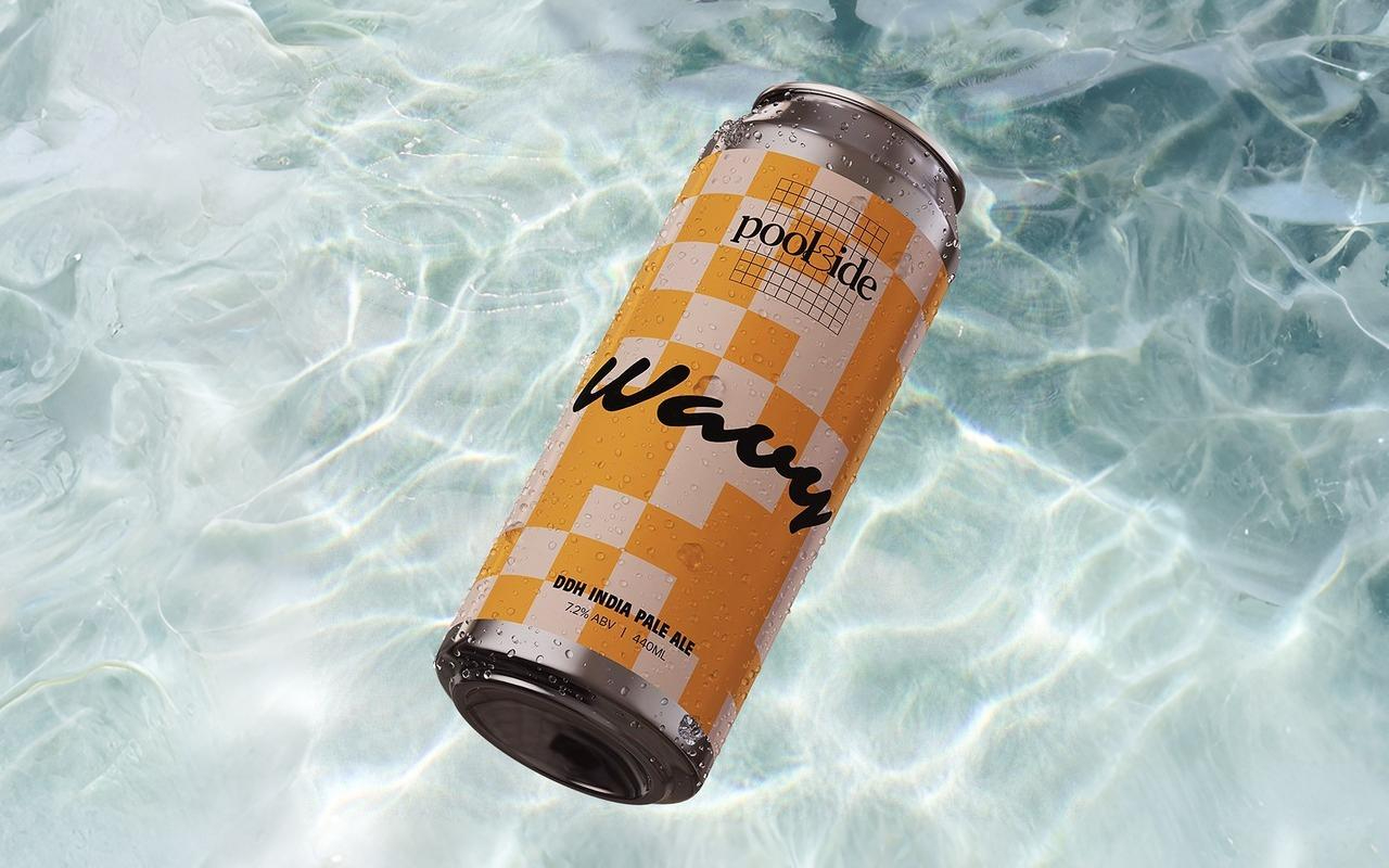 Chiudiamo con Poolside Brewing, birrificio con base ad Amsterdam e un concept talmente efficace che basterebbe il nome a raccontarne l’identità. Tutto ruota intorno al mondo a bordo piscina: le etichette sono dominate da pattern che richiamano il mosaico delle piastrelle da piscina, il logo è essenziale ma coerente, l’uso del colore richiama le tonalità del cloro, del cielo e del sole che si riflette sull’acqua. C’è qualcosa che strizza l’occhio agli anni ’50, ma filtrato da un’estetica moderna, pulita, fresca.